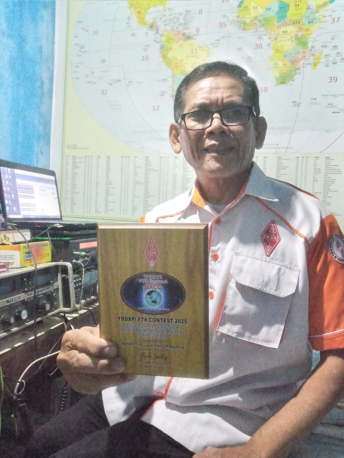 Terimakasih atas kiriman plakat nya. YBDXPI FT8 Contest 2025 Plaque Winner SO #1 YB Extra Class Semoga selalu jaya untuk…